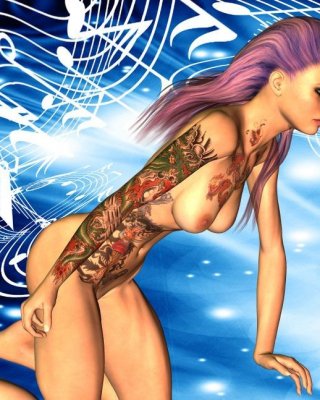 Topless 3d toon girl grows a huge rack