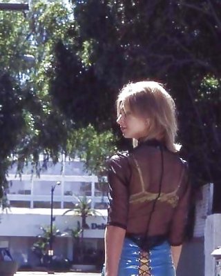 Schönes junges Mädchen mit blonden Haaren lucie nimmt ihre Kleidung ab
