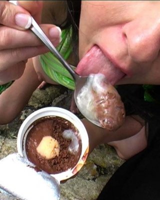 Britney isst Pudding mit ein wenig Sperma oben drauf