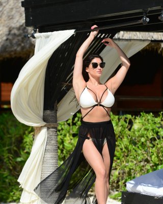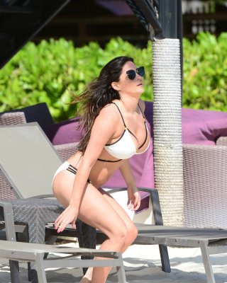 Casey Batchelor zeigt ihren heißen Körper in einem knappen weißen Bikini am Strand in Ib