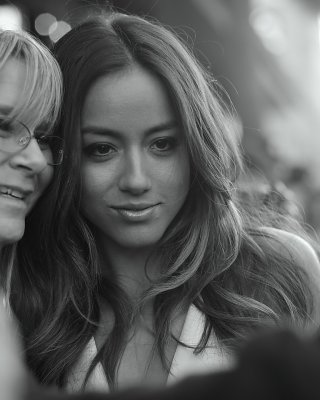 Chloe Bennet braless trägt ein weißes tief ausgeschnittenes Minikleid auf der Captain America-the