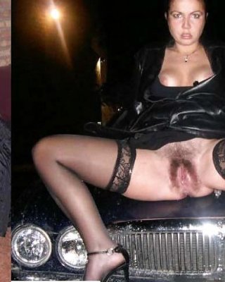 Blonde Frau emily austin zieht sich in der Garage aus