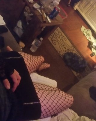 Crossdressing in Netzstrümpfen und Spitze