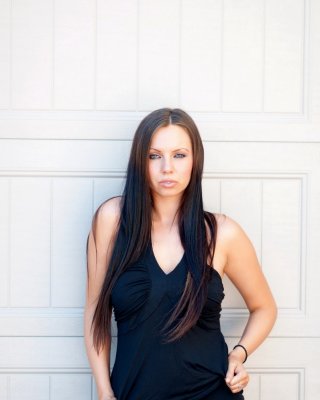 Gorgeous kayla paige trägt eine ein sexy schwarzen Kleidern und Silber Fersen! ihr d