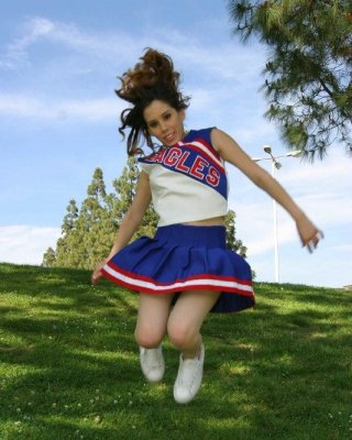 Dreckige Cheerleaderin zeigt ihre rasierte Muschi