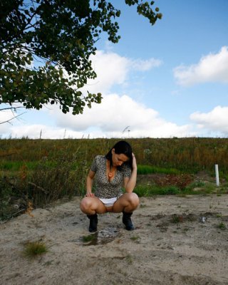 Sexy Brünette pinkelt auf dem Spielplatz