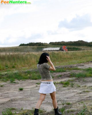 Einsame jugendliche Spaziergängerin beim Pinkeln in der Nähe der Autobahn erwischt