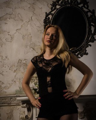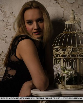 Erotisches Model miela a in schwarzem Kleid zeigt heißen Teenager-Arsch & kahle Fotze in Nahaufnahme