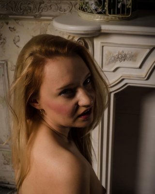 Schöne Rothaarige Ashlyn Molloy zieht ihr elegantes Kleid aus, um ihre nasse Muschi zu streicheln