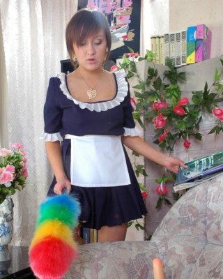 Geile Brünette im karierten Rock rutscht ihr Höschen für einen Fick herunter