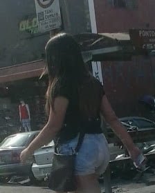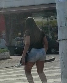 Gordinha de shorts jeeans com um puta rabao