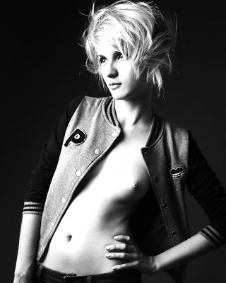 Petite blonde Modell posiert nackt