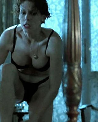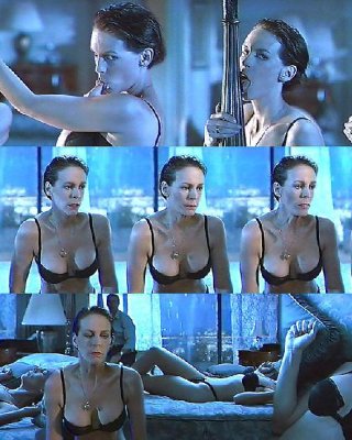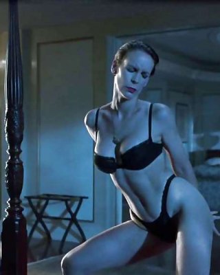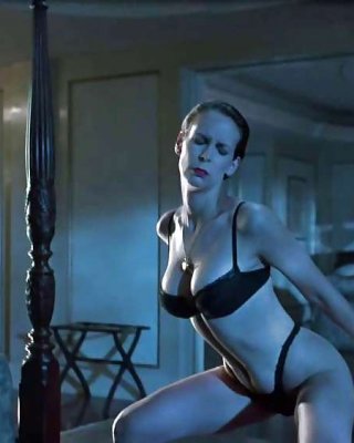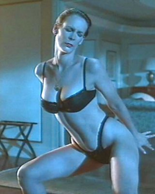 Jamie lee curtis zeigt ihre schönen Titten und posiert in BH und Höschen