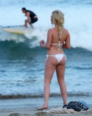 Jorgie Porter zeigt ihren runden Arsch in einem winzigen weißen Bikini