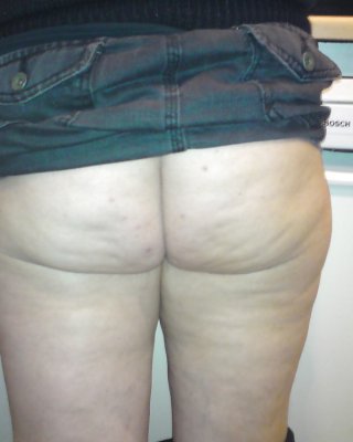 Desirae in weißem Tanga und schwarzen Absätzen