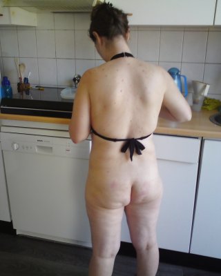 Ein Ebenholz Babe in einem Tanga zeigt uns ihren schönen Arsch