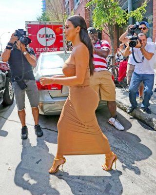 Kim kardashian zeigt ihren kurvigen Körper in einem engen Schlauchkleid in nyc