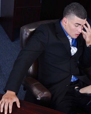 Gorgeous office slut valerie fox shows big tits to get stockings torn