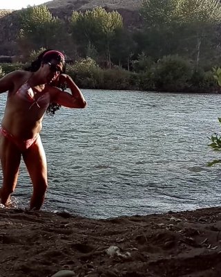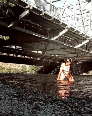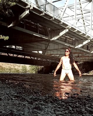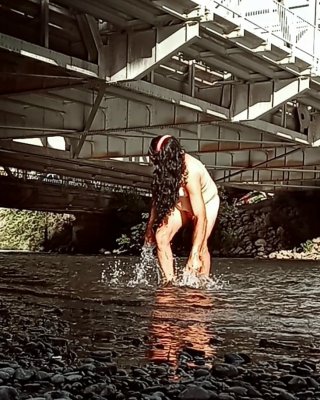 Lexiee playing in the river