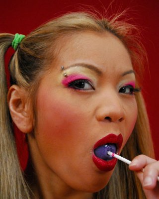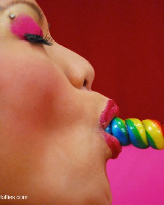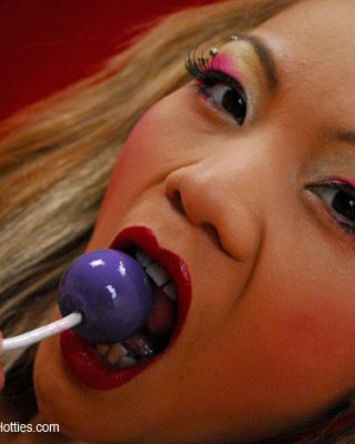 Maile saugt einen Lutscher, bevor sie ihn in ihre Muschi steckt