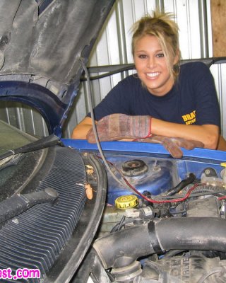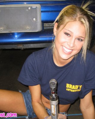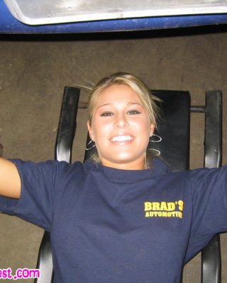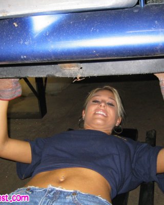 Melissa midwest spreizt aus in einem Sportwagen