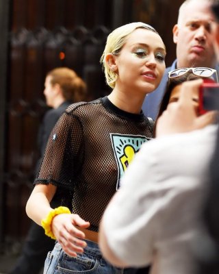 Miley Cyrus zeigt ihre Brüste in einem Netz-T-Shirt in New York