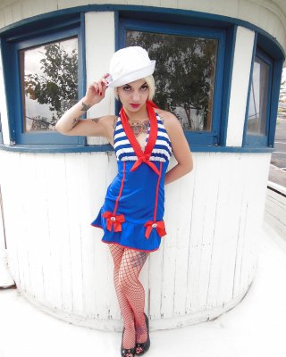 Vollbusige Blondine in Matrosenuniform