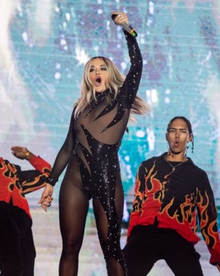 Rita ora zeigt ihre großen nackten Brüste und Arsch