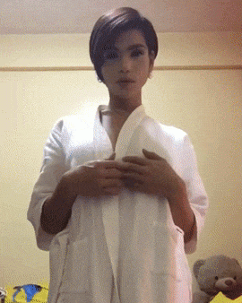 Asiatische Transe streichelt Schwanz im Schaumbad
