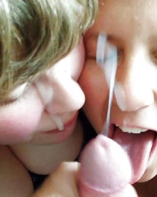 Adorable gals mit rasierten Liebe Löcher teilen einen großen Schwanz und klebrige cumshot