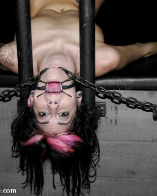 Unschuldig aussehende nackte Mädchen in Bondage bekommt Spanked und Straponed